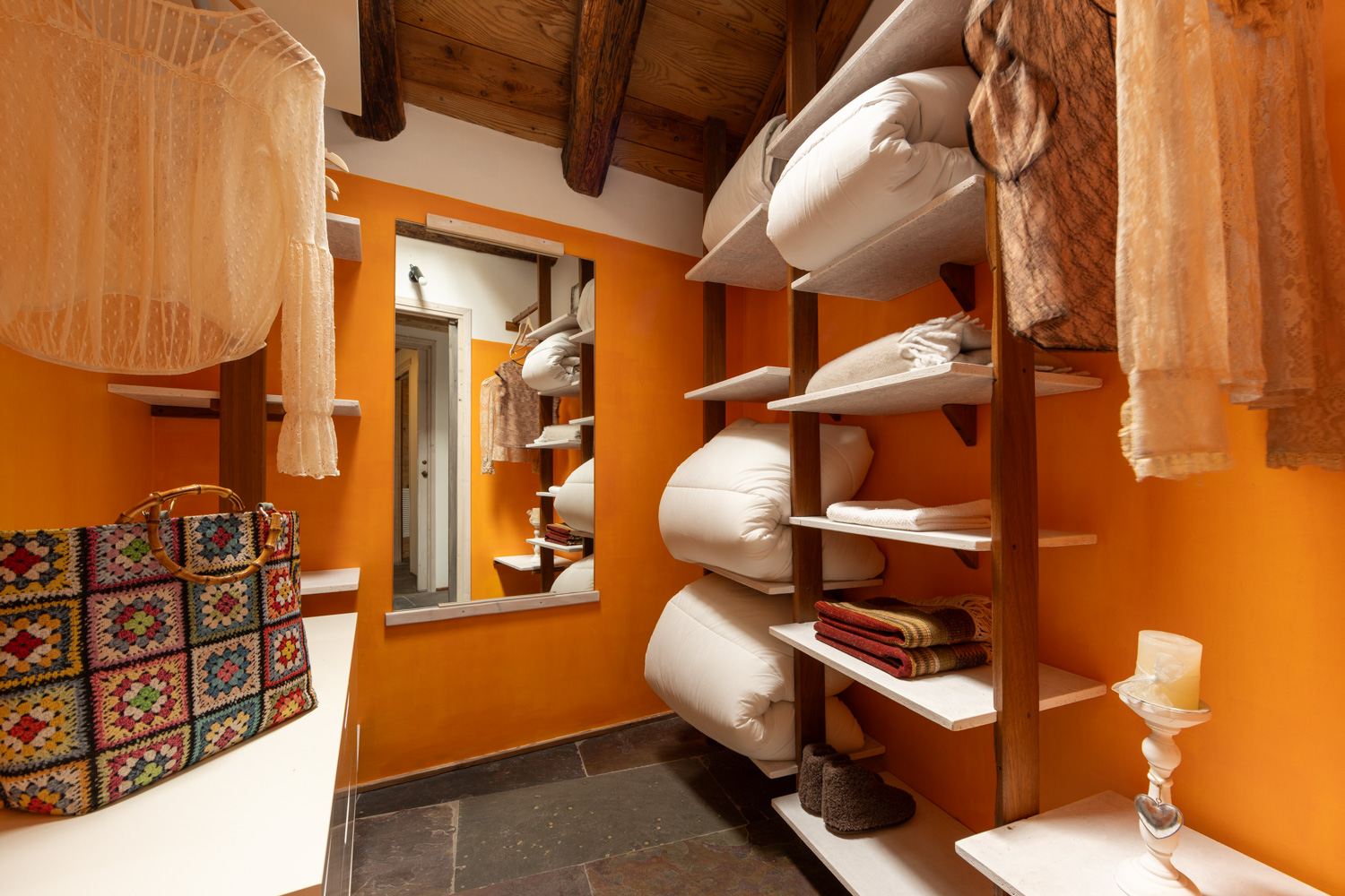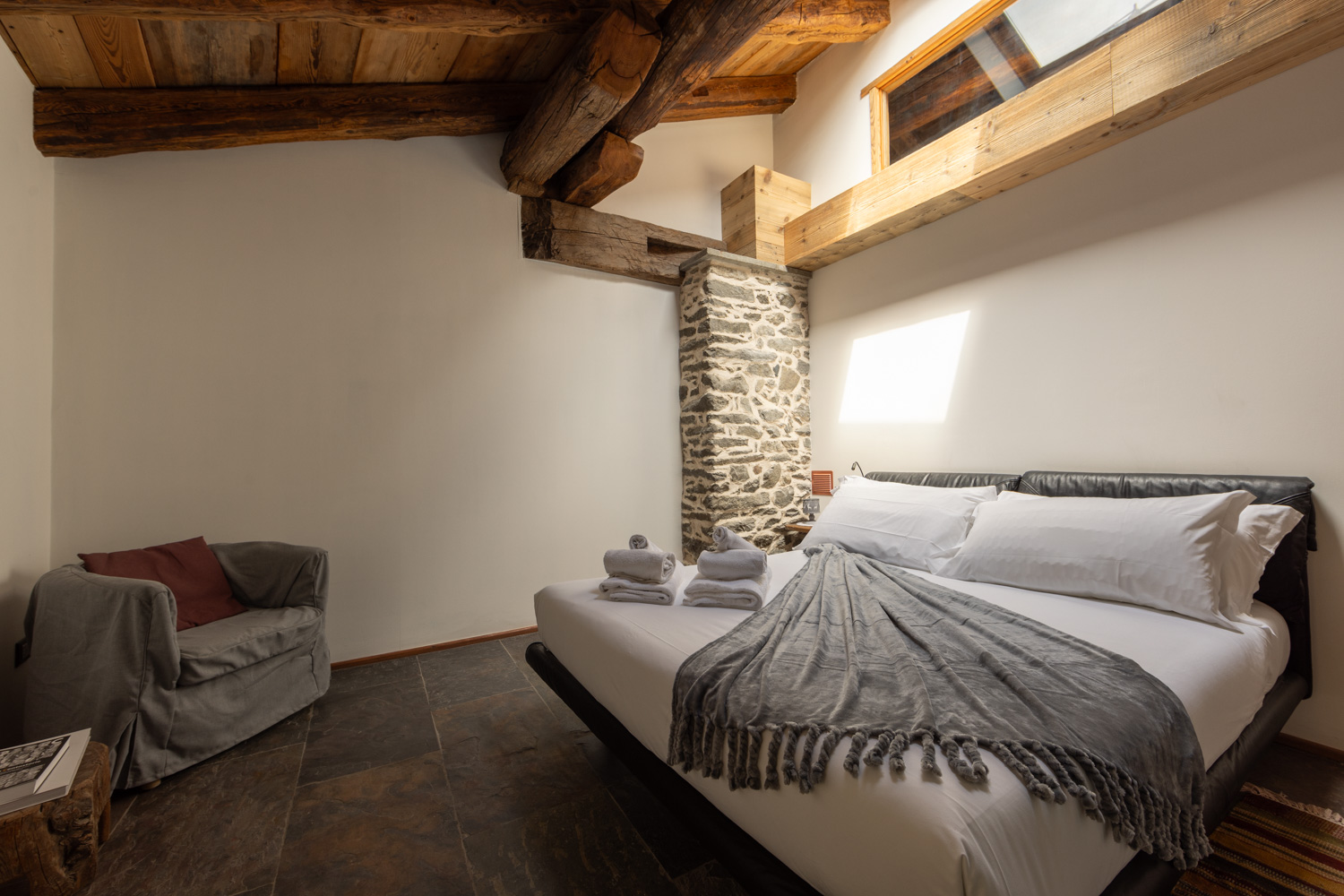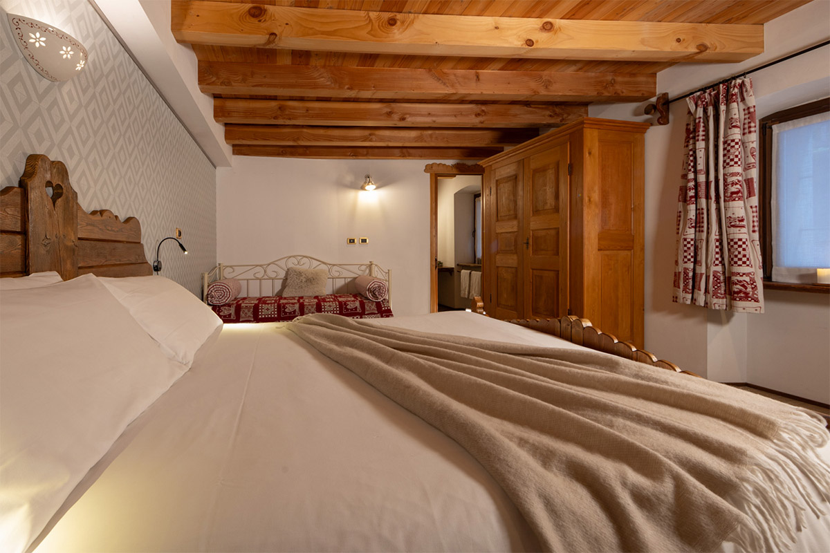 To fully appreciate the charming nature of this old dwelling that today houses Châlet d’Aoste, it’s best to close your eyes and take a journey back in time.