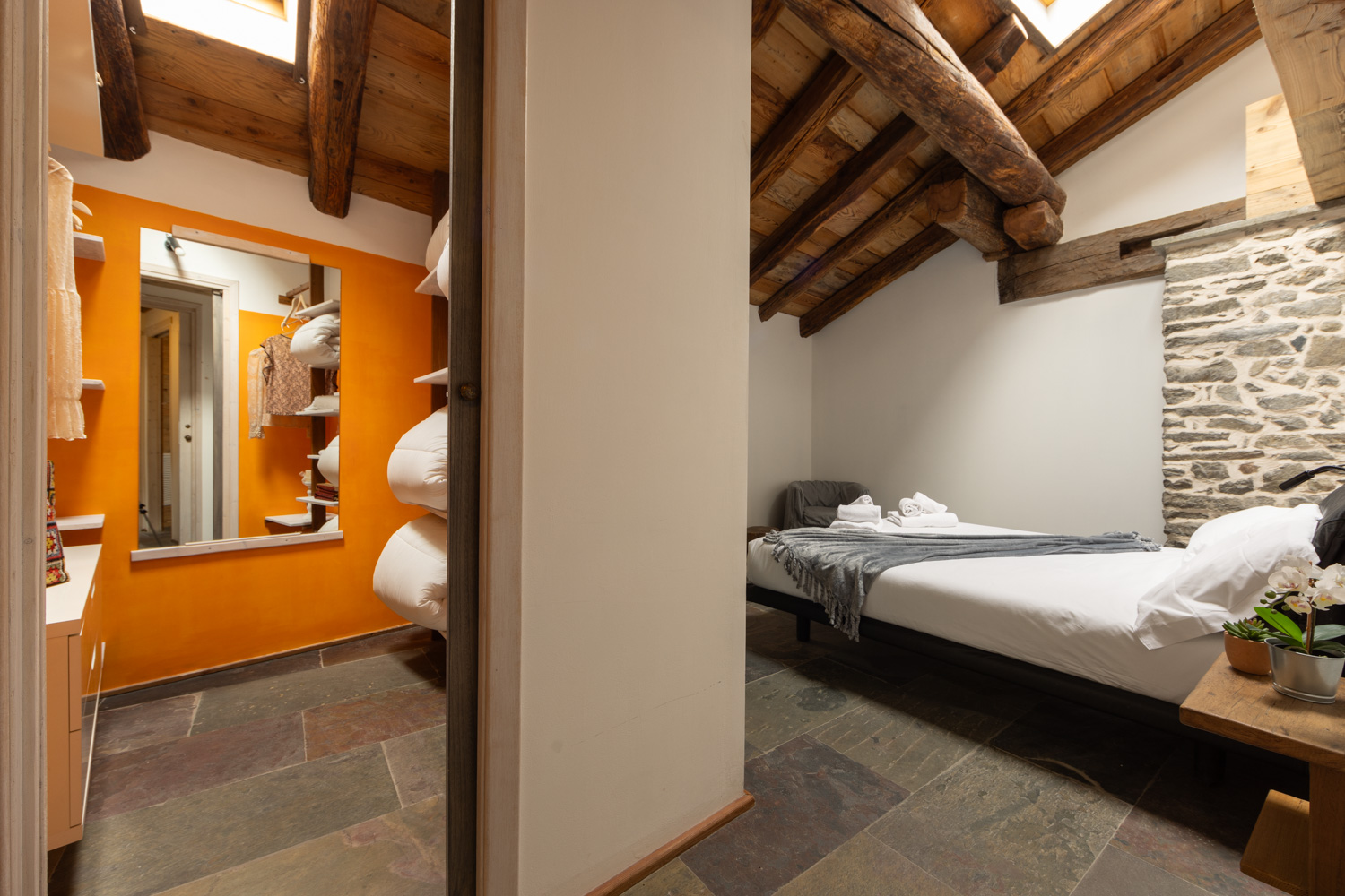 Maison du Chalet è un appartamento elegante e spazioso, nel centro pedonale di Aosta, all’ultimo piano di un antico chalet ristrutturato da poco e adibito ad affittacamere, il nostro Chalet d’Aoste.